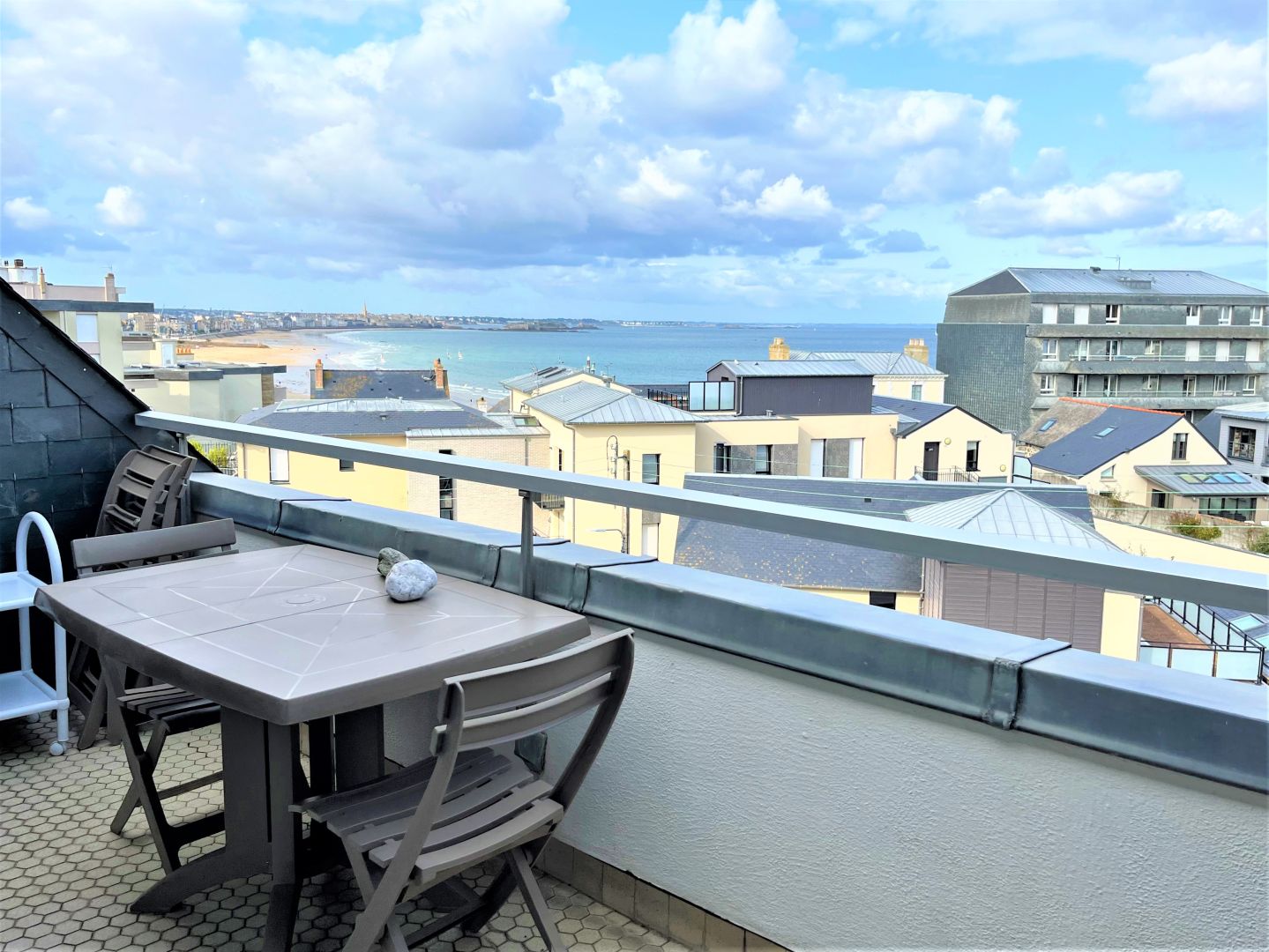 LOUE ! L'agence Côté Particuliers Saint Malo vous propose ce grand appartement de type 2 (46.38 m² loi carrez et 52.65 m² au sol) avec sa vue panoramique sur la mer. Situé au dernier étage d'une résidence avec ascenseur, l'appartement dispose d'une entrée, une cuisine indépendante aménagée, d'un salon/séjour communiquant sur un grand balcon, d'une chambre, d'une salle de bains et d'un WC indépendant. Vous bénéficierez de très belles vues sur la mer et Intra-Muros du salon-séjour, de la chambre et bien entendu du balcon. Un parking et une cave privative viennent compléter cette très belle proposition! A visiter rapidement ! Loyer: 795 €/mois + provisions charges 65 €/mois